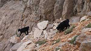 kaçan 5 keçi, Berit Dağı Çürükkaya bölgesindeki kayalıklarda mahsur kaldı.