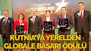 “Yerelden Globale Başarı” kategorisinde ödüle değer görülen KUTNİA’nın ödülünü Ticaret Bakanı Mehmet Muş, GSO Meclis Başkanı Adil Sani Konukoğlu ve GSO Yönetim Kurulu Başkanı Adnan Ünverdi, AJK Tekstil Yönetim Kurulu Başkanı ve KUTNİA CEO’su Jülide Konukoğlu’na takdim etti.