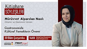 Şiir ve edebiyatın başkentinde kültür sanat faaliyetlerini kesintisiz sürdüren Kahramanmaraş Büyükşehir Belediyesinin okur, yazar ve alanın da uzman isimleri bir araya getirdiği Kütüphane Söyleşileri, her hafta düzenli olarak vatandaşlar ile buluşmaya devam ediyor. Vatandaşların büyük bir ilgiyle takip etiği Kütüphane Söyleşileri’nin bu haftaki konuğu Mürüvvet Alparslan Nazlı olacak. 30 Ekim Çarşamba günü Necip Fazıl Kısakürek Halk Kütüphanesi’nde gerçekleştirilecek söyleşide Nazlı, “ Gastronomide Kültürel Yemeklerin Önemi” konusunu ele alacak. Saat 14.00’da başlayacak söyleşiye tüm Gastronomi alanına merak ve ilgi duyan vatandaşlar davet edilirken Büyükşehir Belediyesinden yapılan açıklamada, şehrin şair, yazar ve alanında uzman kişilerin katılımıyla düzenlenen Kütüphane Söyleşileri’nin düzenli periyotlarla okurlarla buluşmaya devam edeceği belirtildi.