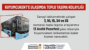 Kahramanmaraş Büyükşehir Belediyesi, şehir genelinde 480 toplu taşıma aracıyla sağladığı ulaşım hizmet ağını genişletiyor. Bu kapsamda, Sanayi istikametinde çalışan 5 güzergâhta değişikliğe gidildi. Değişiklik kapsamında; 7, 10,15 34 ve 35 numaralı toplu taşıma araçlarının varış noktası Kuyumcukent istikametine kadar uzatıldı. 13 Aralık Pazartesi günü itibariyle uygulamaya alınacak kararla birlikte, şehrin en büyük ticaret ve üretim merkezlerinden Altınşehir Küçük Sanayi Sitesi’ne (Kuyumcukent) ulaşım önemli ölçüde kolaylaşmış olacak.