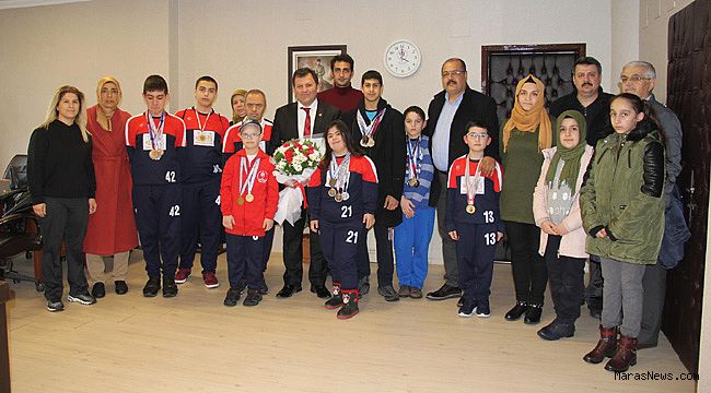 Şampiyon sporcularımız, Sporcularımızın Velileri, antrenörleri Serçin Aksu, Selçuk Paksoy, Türkiye Özel Sporcular Spor Federasyonu As Başkanı Efkan Korkmaz Gençlik Hizmetleri ve Spor İl Müdürü Ali İhsan Kabakcı’yı makamında ziyaret ettiler. Ziyarette sporcular Kabakcı’ya çiçek sundular. Gençlik Hizmetleri ve Spor İl Müdürü Ali İhsan Kabakcı elde edilen başarıdan dolayı sporcuları ve antrenörlerini tebrik ederken Sporcu velilerine desteklerinden dolayı teşekkür etti. Kabakcı” Özel Sporcular, Engelliler spor branşlarında Kahramanmaraş her dönem birçok başarılı sporcu çıkarmış bir ildir. Avrupa Dünya ve Paralimpik Olimpiyatlarında Şampiyon sporcularımız var. Özellikle Yüzme, Atletizm ve Goalball da Şampiyon sporcularımız var engelli branşlarını yakından takip ediyoruz. İl Spor Merkezlerimiz Engelli sporcularımıza her zaman açıktır. Bu gün bu güzel çocuklarımız madalyalar ile geldiler hepsini kutluyorum. Antrenör ve Velilerimize fedakâr çalışmalarından dolayı teşekkür ediyorum ”dedi.