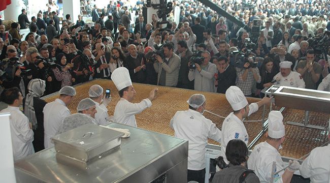 oluşan baklavayı özel olarak hazırlanan tek fırında pişirerek Guinness Rekorlar