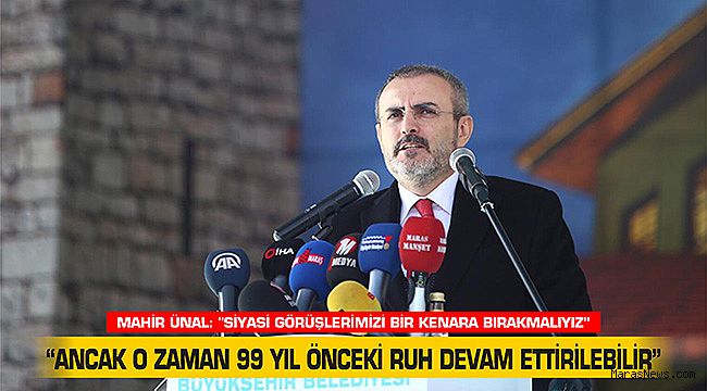 Kentin düşman işgalinden kurtuluş günü olan 12 Şubat'ın önemine işaret eden Ünal, "Şu anda, Halep'ten 'Şehrim işgal altındayken duramam' deyip Maraş'a gelen ve şehrin kurtuluşunu koordine ve organize eden Arslan Bey'in, Sütçü İmam'ın durduğu yerdeyiz. Biz biliyoruz ki bizi biz yapan şey, ne olduğumuz değil, istikametimiz ve nerede durduğumuzdur." dedi.