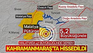 Merkez Üssü Malatya’nın Uluköy ilçesinde 4,7 büyüklüğünde