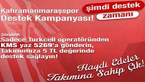 Kahramanmaraşspor'a Sms destek kampanyasına katılmak için KMS yazıp 5269'a