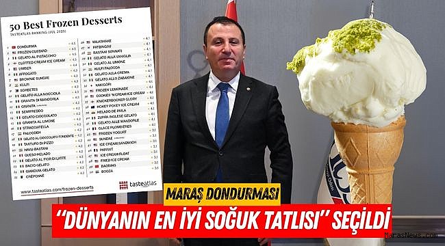 Dünyanın en popüler gastronomi platformlarından biri olan TasteAtlas, geleneksel Maraş Dondurması’nı “Dünyanın En İyi Soğuk Tatlısı” olarak ilan etti. Yüzlerce yerel ve geleneksel lezzetin değerlendirildiği küresel listede zirveye oturan Maraş Dondurması; kendine özgü kıvamı, dayanıklılığı, kesilme şekli ve eşsiz sunumuyla dikkat çekti.