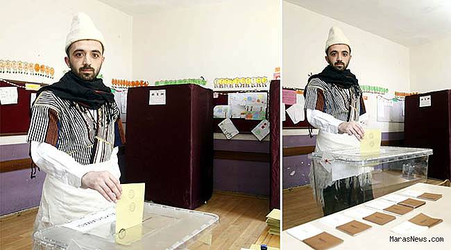 Kahramanmaraş'ta bir kişi, kentin düşman işgalinden kurtuluşunda giyilen "çete" adı verilen kıyafetle oy kullandı.