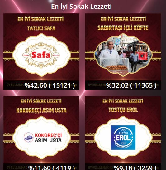 En İyi Köfteci, En İyi Kurufasulyeci, En İyi Künefeci, En İyi Lezzet