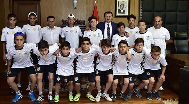 Başkanlık makamında gerçekleşen ziyarette Maraşgücüspor Başkanı Mustafa Dağlı, U13 Takımlarının sezonu namağlup olarak tamamladığını ve şampiyon olduklarını söyledi.