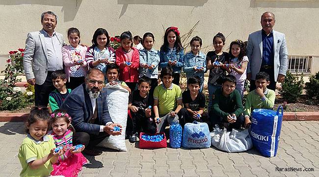 4/D sınıfı öğrencileri, topladığı kapakları Onikişubat