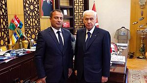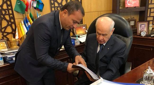 Başkanları Dr. Devlet Bahçeli’ye sundu. Bahçeli’yi makamında ziyaret eden