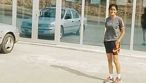 forma giyen Forvet oyuncusu Merve İnceler stafet Mülakat Koşusunda16.02 derece