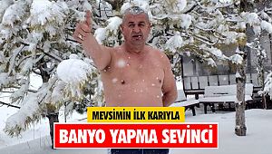 birlikte kırsal Doğan Mahallesi'ndeki evinin önünde kar banyosu yaptı.