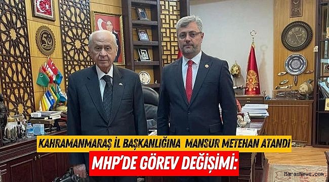 Milliyetçi Hareket Partisi (MHP) Kahramanmaraş İl Başkanlığı'nda görev değişikliği yaşandı. Yaklaşık üç yıldır bu görevi yürüten Hüseyin Vahit Demiröz’ün istifasının ardından, partinin Genel Merkezi yeni il başkanını belirledi. Türkoğlu İlçe Başkanı olarak görev yapan Mansur Metehan, MHP Kahramanmaraş İl Başkanlığı'na atandı.