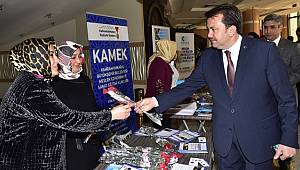 Başkan Erkoç konuşmasının ardından, mikrokredi kullanımında başarılı olan Elif Sema Yıldırım, Sibel Çınar ve Şaziye Tepebaşılı’ya hediyelerini takdim etti.