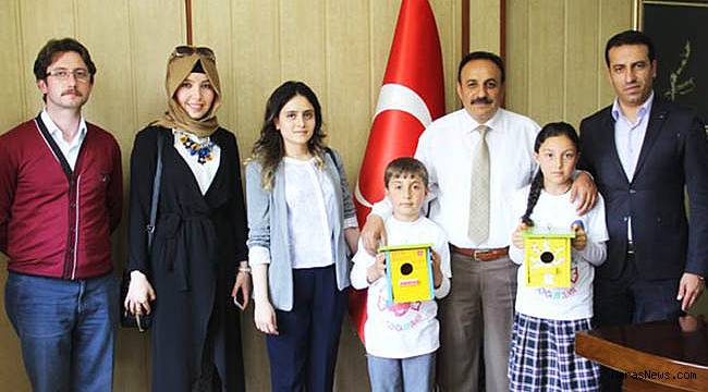 Başkanı Fevzi Küçük’ü ziyaret ederek, Ona da kuş yuvası hediye ettiler.