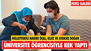 Burada aileyle sohbet eden Öçal, daha sonra Hakan ve Şerife Şahan kardeşlerle kek yaptı.