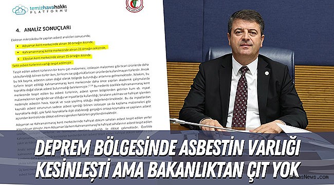 Tespit edilen asbest türlerinin tehlikesine dikkat çeken Tutdere, “Dünya Sağlık Örgütü Tarafından en önemli kanser nedenleri arasında sınıflandırılan amfibol asbest grubu minerallerinden ‘antofilit’ türü asbest Adıyaman, Kahramanmaraş ve Elbistan’da tespit edilmiştir. Hem Adıyaman’da hem Kahramanmaraş’ta hafriyat sahalarının asbest tespit edilen sınırları yerleşim yerlerine ve konteyner kentlere yakınlığı ile dikkat çekmektedir. Bu çerçevede bölgede bina stokunun büyük oranda yıkılmış olması ile ortaya çıkan ciddi bir asbest riski söz konusudur. Defalarca gündeme getirdiğimiz ve önlem alınması için çağrılar yaptığımız bu konuda yetkililerden herhangi bir açıklama yapılmamış olması, bölgede etkin bir çalışma yürütülmüyor olması vatandaşlarımızın kaderine terk edildiğinin en büyük göstergesidir. Bilimsel olarak asbestin varlığı kanıtlanmış, vatandaşlarımız asbest soluyor ama hükümet yetkilileri bunu görmezden geliyor” diye tepki gösterdi.