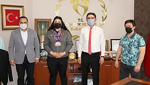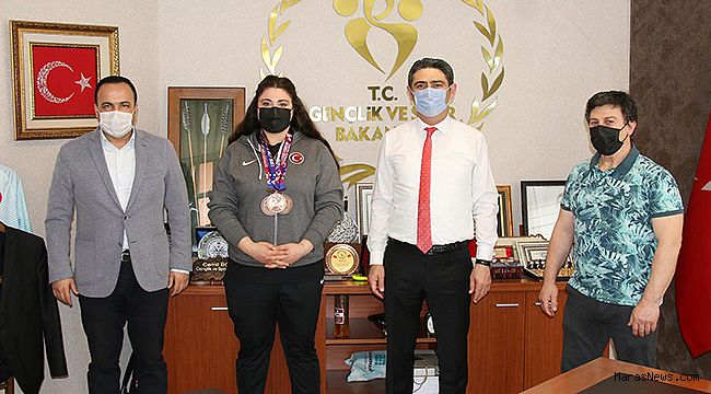 Milli Haltercimiz Melike Günal ve Antrenörü Muhammed Nazik Şampiyona dönüşü Onikişubat Gençlik ve Spor İlçe Müdürümüz Kadir Gemci ile birlikte Gençlik ve Spor İl Müdürümüz Cemil Boz’u ziyaret ettiler. İl Müdürümüz Cemil Boz elde edilen Başarıdan duyduğu Memnuniyeti ifade ederek Sporcumuzu ve Antrenörümüzü Tebrik etti. Ayrıca Milli Haltercimize başarısından dolayı Altın Takarak ödüllendirdi.