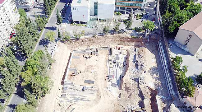 Kahramanmaraş Büyükşehir Belediyesi Etüd ve Projeler Dairesi Başkanlığı Etüd ve Projeler Şube Müdürlüğü kontrolünde kazı çalışmaları tamamlanan Milli İrade Meydanı’nda tüm forekazıklar biterek kuşaklama kirişleri devam ediyor.3. Bodrum kat 1. Kısım perdeler yapılarak, hafriyatlar alınıyor.