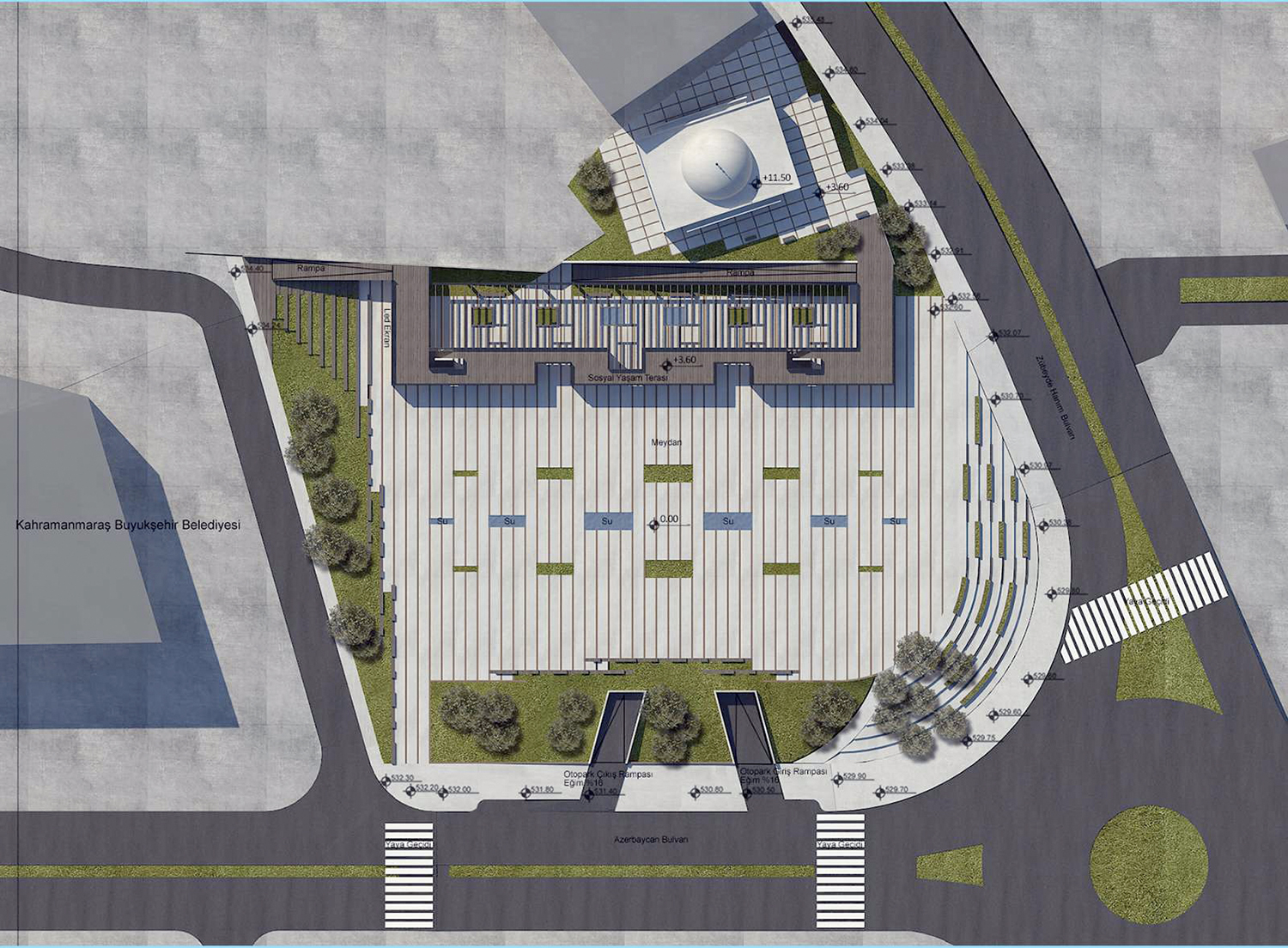 içinde bulunduracak. 350 araç kapasiteli 3 katlı yeraltı otoparkı ile birlikte