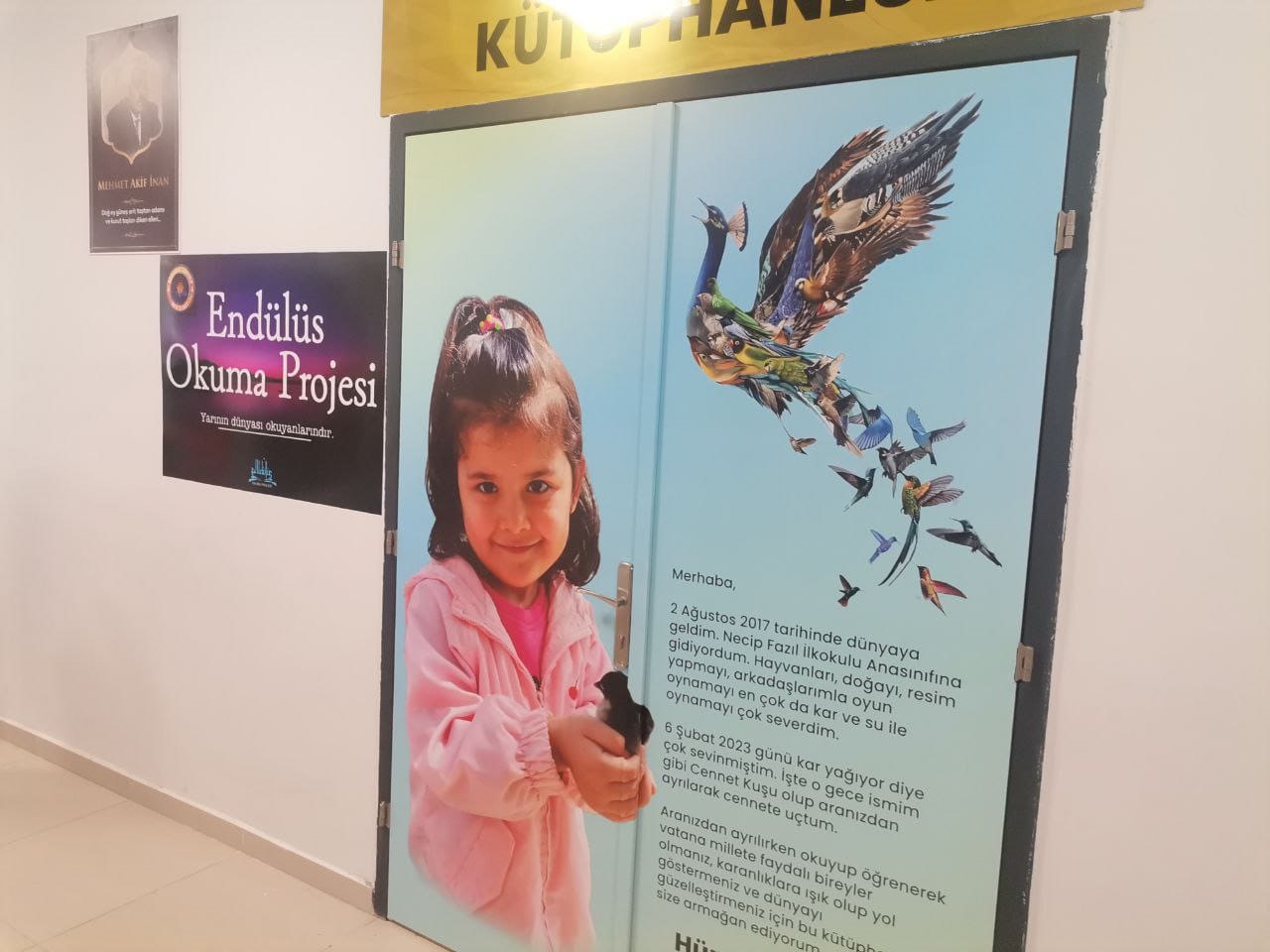 "Asrın felaketi" olarak nitelenen 6 Şubat depremlerinin merkez üssü Kahramanmaraş'ta bir ilkokulda oluşturulan kütüphaneye, depremde hayatını kaybeden Hüma Nur Özbek’in ismi verildi