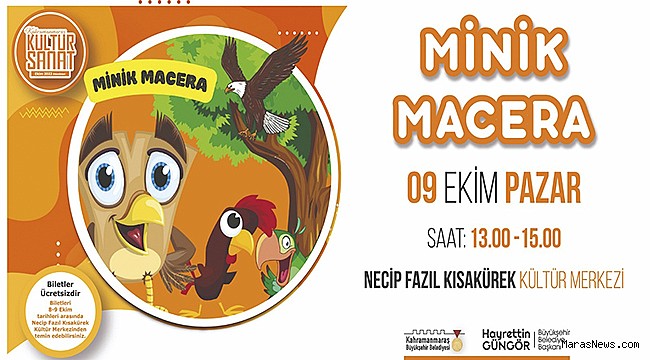 Kahramanmaraş Büyükşehir Belediyesi, çocukların hafta sonunu daha eğlenceli ve verimli şekilde değerlendirmelerine katkıda bulunmak ve sosyalleşmelerini sağlamak için çeşitli etkinlikler düzenlemeye devam ediyor. Bu kapsamda, 9 Ekim Pazar günü “Minik Macera” adlı çocuk tiyatrosu minikler için perdelerini açacak. Necip Fazıl Kısakürek Kültür Merkezi’nde gerçekleştirilecek tiyatro gösterisi saat 13.00 ve 15.00 olmak üzere 2 seans şeklinde sahnelenecek. Ormandaki sevimli hayvanların başından geçen maceraları konu alan etkinliğin biletleri 8 – 9 Ekim tarihlerinde Necip Fazıl Kısakürek Kültür Merkezi’nden ücretsiz olarak temin edilebilecek.
