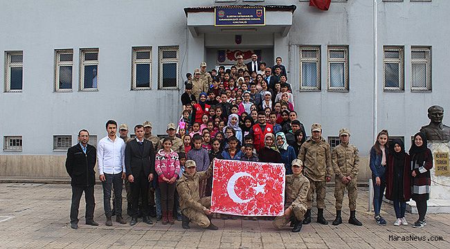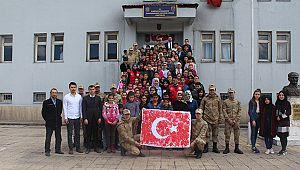 Öğrencilerin parmak izleri ile oluşturan Ay Yıldızlı bayrak,