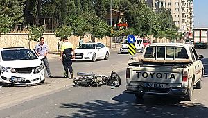 plakalı otomobil çarpıştı. Kaza sonrası motosiklet sürücüsünün yaralandığı