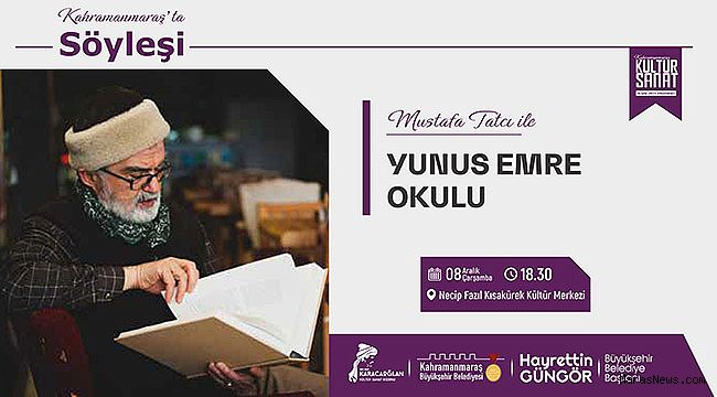 Kahramanmaraş Büyükşehir Belediyesi Aralık Kültür Sanat Etkinlikleri devam ediyor. Ayın sonuna kadar birbirinden renkli etkinliklerle sanatseverleri buluşturacak takvim kapsamında usta yazar Mustafa Tatçı ile söyleşi düzenlenecek. Necip Fazıl Kısakürek Kültür Merkezi’nde 8 Aralık Çarşamba günü saat 18.30’da gerçekleştirilecek etkinlik, Yunus Emre konuşulacak. Kültür Spor ve Turizm Daire Başkanlığı’ndan yapılan açıklamada, tüm vatandaşların programa davet edildiği bildirildi.