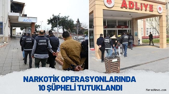 Narkotik Suçlarla Mücadele Şube Müdürlüğümüz görevlilerince 1 hafta içerisinde uyuşturucu madde satıcılarına yönelik yürütülen çalışmalarda; 5 şüpheli paketledikleri uyuşturucuları piyasaya sürmek üzere iken, 5 şüpheli uyuşturucu alışverişi esnasında olmak üzere toplamda 10 şüpheli suçüstü yakalandı; Cumhuriyet Başsavcılığı koordinesinde yakalanan şüphelilerin üzerlerinde çeşitli miktarlarda farklı uyuşturucu maddeler yakalanırken, ikamet ve araçlarında da arama işlemi gerçekleştirildi. İkamet ve araçlarda yapılan aramalarda şüphelilerin üzerinde yakalanan uyuşturucu maddelerle aynı özellikte maddeler ile birlikte; paketleme aparatları, hassas terazi ve av tüfeği ele geçirildi.