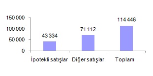 satışı yapılan konutların 445’i ipotekli, 800’ü diğer şekilde satılırken; bu