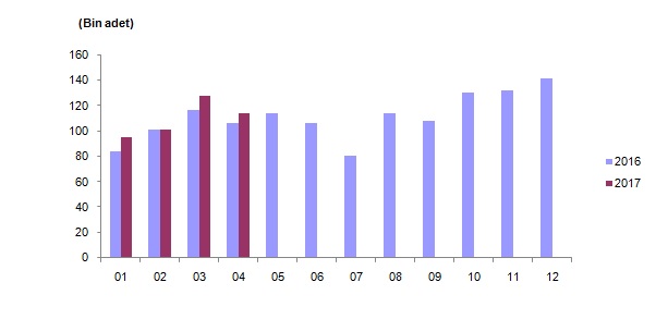 ayında bir önceki yılın aynı ayına göre yüzde 7,6 oranında artarak 114 bin 446