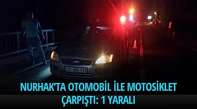 Edinilen bilgiye göre, Muharrem K. (33) idaresindeki 20 ABD 115 plakalı otomobil ile Adıyaman-Gölbaşı istikametinden Nurhak ilçesine seyir halinde iken Tatlar Mahallesi mevkiinde Cengiz D. (38) yönetimindeki 07 AHM 358 plakalı motosiklete yandan çarptı. Kazada çarpmanın etkisiyle yere düşen motosiklet sürücüsü yaralandı. Elbistan Devlet Hastanesine kaldırılan yaralının sağlık durumunun iyi olduğu öğrenilirken kazayla ilgili inceleme başlatıldı.