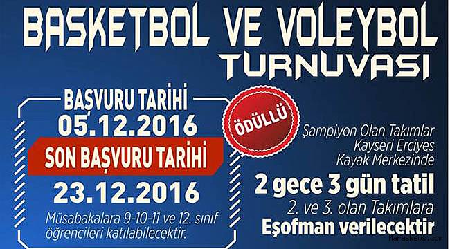 12 Şubat Kurtuluş Bayramı etkinlikleri çerçevesince bu yıl düzenlenecek Liselerarası Basketbol ve Voleybol Turnuvalarında şampiyon olan takımlara Kayseri Erciyes Kayak Merkezi tatili verilecek. 2. Ve 3. Olanlara ise eşofman takımı hediye edilecek. Kahramanmaraş Büyükşehir Belediyesi Sağlık ve Sosyal Hizmetler Dairesi Başkanlığı Gençlik ve Spor Şube Müdürlüğü tarafından gerçekleştirilecek olan turnuvaya liselerin 9,10,11 ve 12. Sınıf öğrencileri katılabilecek. Turnuvaya katılmak isteyenler Gençlik ve Spor Şube Müdürlüğü’ne 5 Aralık 2016 tarihinden itibaren 23 Aralık 2016 tarihine kadar müracaat edebilecek olurken katılımın az olması ile turnuva ile ilgilenen birim işi hızlandırmak amacı ile çalışmalarını hızlandırdı ve katılımcılarını beklemeye başladı. Kahramanmaraş’ın düşman işgalinden kurtuluşunun 97. Yıldönümü olan 12 Şubat 2017 tarihinde kutlanacak olan kutlama törenleri çerçevesince gerçekleştirilecek olan Basketbol ve Voleybol Turnuvalarında maçlar 2 Ocak 2017 tarihinde oynanacak müsabakalarla başlayacak. Müsabakaların sonunda şampiyon olan takımlara Kayseri Erciyes Kayak Merkezi’nde 2 gece 3 gün sürecek tatil hediye edilecek. Müsabakalarda 2. Ve 3. Olan takımların sporcularına ise eşofman takımı hediye edilecek. (İLKER YİYEN)