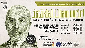 Kahramanmaraş Büyükşehir Belediyesi tarafından bu yıl ikincisi düzenlenecek “Uluslararası Şiir ve Edebiyat Günleri” ödüllü yarışma başvurularında süre doluyor. Kentin tüm ilçelerinde 30’a yakın faaliyetle kültür sanat dostlarını buluşturacak etkinlikler kapsamında, farklı yaş gruplarına ve sanat alanlarına yönelik birçok yarışma da düzenlenecek. Çeşitli ödüllerin verileceği yarışma kapsamında, kısa film, müzik, resim, şiir okuma ve yazma, deneme ve mektup branşları bulunurken, etkinliklerde Âşık Mahzuni Şerif, Mehmet Akif Ersoy, Yunus Emre gibi Türk Edebiyatı’nın temel taşları olan portreler anılacak. İlkokul, ortaokul, lise, yetişkin ve yabancı uyruklu kategorilerinde başvurulabilecek yarışmalarda, son tarih ise 24 Eylül Cuma olarak belirlendi. Üç gün sonra sonlanacak çevrimiçi başvurulara ve yarışmalar hakkındaki detaylı bilgiye www.kmedebiyatgunleri.com adresi üzerinden erişilebiliyor.