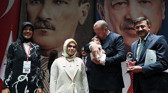 Cumhurbaşkanı Erdoğan, büyük sevgi gösterdiği Kahramanmaraşlı Seda Kel Altundal'ın bebeğine altın takarak, anneyi özverili çalışmalarından dolayı tebrik etti.