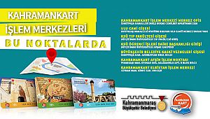 Kahramanmaraş Büyükşehir Belediyesi’nin toplu taşıma araçlarında kullanılan Kahramankart işlemleri şehrin birçok işlem merkezleri aracılığıyla kolayca yapılabiliyor. Toplamda 4 ilçede 7 farklı noktada yer alan merkezlerden yeni kart çıkarma, vizeleme ve daha birçok işlem gerçekleştirilebiliyor. Kentin merkez ilçelerinden Onikişubat’ta KSÜ Tıp Fakültesi Gişesi ve KSÜ Öğrenci İşleri Daire Başkanlığı’nda yer alan iki işlem merkezinin yanı sıra, Dulkadiroğlu ilçesinde Kahramankart İşlem Merkezi Merkez Ofis, Ulu Camii Gişesi ve Kahramanmaraş Büyükşehir Belediyesi Ana Hizmet Binası KASKİ Vezneleri gişesi başta olmak üzere üç noktadan işlem yapılabiliyor. İlçelerde ise Elbistan’da Girne Caddesi ve Afşin Pınarbaşı Mahallesi’nde yer alan merkezlerde de kart işlemlerine yönelik hizmet veriliyor.