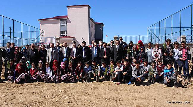 Çeleğen, öğrenciler ile birlikte çam fidanları dikerek, etkinliğe destek