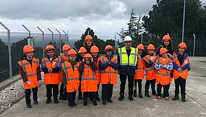 ve öğretmenlere eşlik ederek sahanın ve rüzgar enerjisinin tanıtımını yaptı.