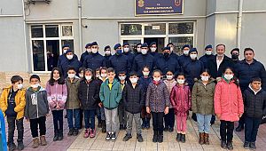 Türkoğlu Fatih Mahallesi Atatürk İlkokulu 3. ve 4. sınıf öğrencileri, ördükleri atkıları İlçe Jandarma Komutanlığını ziyaret ederek, jandarma personeline hediye etti.