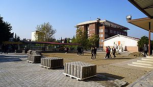 tarafından yürütülen iş kapsamında okul bahçesine 5 bin metrekare parke