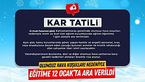 Şehir genelinde etkisini artıran olumsuz hava koşulları nedeniyle 12 Ocak Pazartesi günü resmi ve özel tüm eğitim kurumlarında eğitim ve öğretime 1 gün süreyle ara verildi. Eğitime verilen aranın yanı sıra kamu kurum ve kuruluşlarında görev yapan bazı personeller için de idari izin uygulaması getirildi. Bu kapsamda; hamile personeller, engelli çalışanlar, çocuğu kreş veya anaokuluna devam eden anneler ile kronik rahatsızlığı bulunan kamu çalışanları, 12 Ocak Pazartesi günü idari izinli sayılacak.