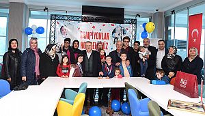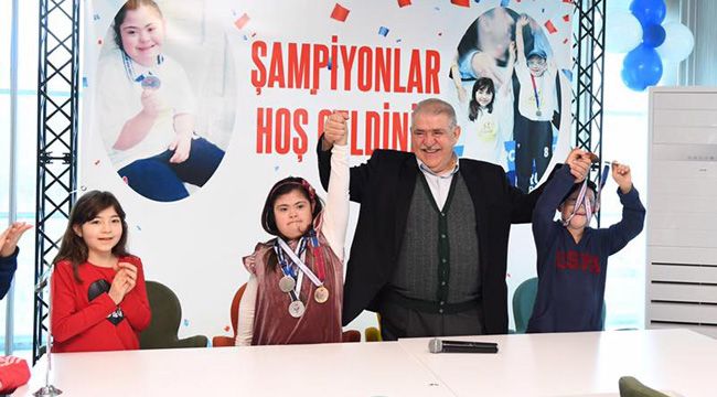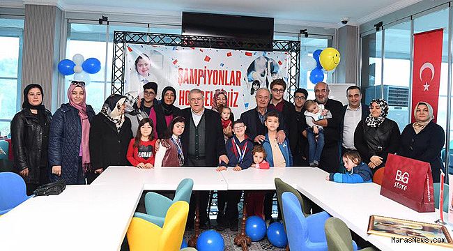 ‘’Geçen hafta cumartesi günü bu iki şampiyon gencimiz Antalya’da yapılan müsabakalarda ikişer, üçer tane altın madalya alarak şampiyon oldular. Yani bir başka ifadeyle Kahramanmaraş’ımızı Antalya’da Türkiye çapında temsil ettiler. Kahramanmaraş’ımızı başarı göstererek temsil eden bu çocuklarımıza bugün belediyemizin tesisinde bir program yaparak, hem onları onurlandırmak ve kendilerine verdiğimiz önemi, değeri göstermek amacıyla bugün burada bir araya geldik. Her iki çocuğumuza da bundan sonraki müsabakalarda, yarışmalarda başarılar diliyorum. Kahramanmaraş’ımızı bugün olduğu gibi gelecekte de inşallah başarıyla temsil edeceklerini düşünüyorum. Biz Onikişubat Belediyesi olarak toplumumuzun tüm katmanlarına, tüm kesimlerine ulaşabilmek bakımından, özellikle bu alanda duyarlı davranmamız gerektiğini biliyoruz. İşte bu bağlamda birkaç ay önce temelini attığımız ve çok kısa bir sürede de inşaatını bitireceğimiz Down Eğitim, Kültür ve Sanat Merkezimizi çocuklarımızın hizmetine açacağız inşallah. Çocuklarımızın bu merkezimizde daha iyi eğitim almalarını ve toplumun içerisinde kendilerini daha rahat ifade edebilmelerine imkân sağlayarak, onları topluma kazandırmaya inşallah gayret edeceğiz. Buralarda çocuklarımız hem kendilerini geliştirecek ve ilerleyen süreçlerde Kahramanmaraş’ımızı en iyi şekilde temsil edecekler. Türkiye çapında şampiyon olan bu çocuklarımız önümüzdeki yıllarda belki Avrupa belki Dünya şampiyonu olabilirler diye düşünüyorum. En önemli yapılması gereken hareket onlara bu çalışmalarda destek verecek tesisler kazandırılmasıdır. Bu bağlamda da bu tesislerin yapılması için gayret ediyoruz. Bir defa daha bu çocuklarımızın ailelerine ülkemize katkı sağlayacak evlatlar olarak yetiştirdikleri için teşekkür ediyorum. Sporcularımızı bir kez daha tebrik ediyor ve başarılarının devamını diliyorum.’’
