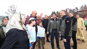 Etkinlik boyunca yüzlerce vatandaş, öğrenciler ve gönüllüler fidan dikimine katılarak, yangında zarar gören alanların yeniden yeşermesi için el birliğiyle fidanları toprakla buluşturdu.
