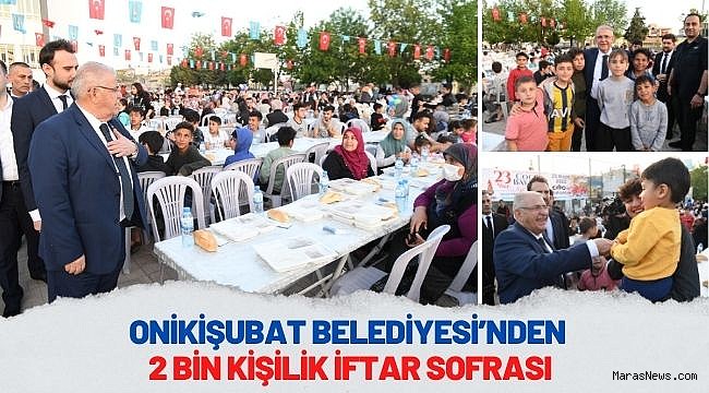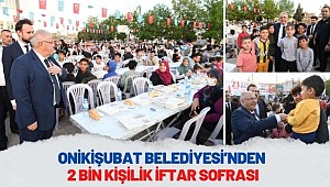 Her sene kurduğu iftar sofralarıyla Ramazan-ı Şerif’in bereketini çoğaltan Hanefi Mahçiçek öncülüğündeki Onikişubat Belediyesi, eski Ramazan’ları adeta canlandırıyor. Onikişubat Belediyesi, Piri Reis Mahallesi’nde 2 bin kişilik iftar yemeği verdi. Muhteşem katılımlı iftar programına Başkan Mahçiçek’in yanı sıra bir dizi ziyaret ve temaslarda bulunmak üzere kente gelen AK Parti MKYK Üyesi ve Çorum Milletvekili Ahmet Sami Ceylan, AK Parti Kahramanmaraş İl Başkanı Fırat Görgel, AK Parti Onikişubat İlçe Başkanı Mücahit Kara, AK Parti Onikişubat İlçe Gençlik Kolları Başkanı Selçuk Sinan Ak, belediye meclis üyeleri ve 2 bini aşkın vatandaş katıldı. İftar öncesinde bütün masaları tek tek ziyaret ederek iftara gelen vatandaşlarla sohbet eden Başkan Mahçiçek, çocuklar ve ailelerle bol bol hatıra fotoğrafı çekildi. İftar öncesinde Kur’an-ı Kerim tilavetinin ardından oruçlar dualar eşliğinde açılırken, Ramazan ayının maneviyatı ve bereketi paylaşıldı.