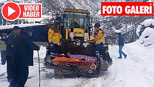 Gece gündüz demeden 3 vardiya şeklinde mesaiye devam eden karla mücadele ekipleri en son Küçüksır Mahallesinde ambulansın ulaşamadığı hastayı dozerin kepçesinde ambulansa kadar taşıdı.