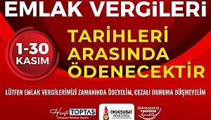 Her yıl Mayıs ve Kasım aylarında ödenen emlak vergisine ait taksit ödemelerine ilişkin bilgilendirmede bulunan Onikişubat Belediyesi, ikinci taksit ödemelerinde son günün 30 Kasım olduğunu belirterek, vatandaşlara geç kalınmaması yönünde uyarılarda bulundu.