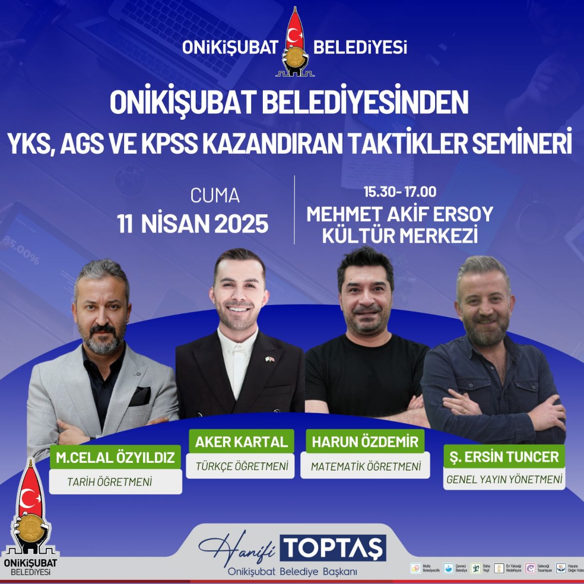 Eğitim yatırımlarıyla dikkat çeken Onikişubat Belediyesi, gençlerin ve sınavlara hazırlanan vatandaşların eğitim süreçlerine katkı sunmak amacıyla önemli bir seminere imza atıyor.