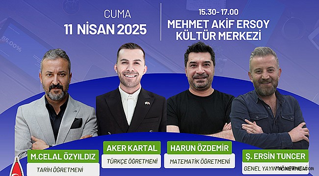 Türkiye’nin alanında en önde gelen isimlerden biri olan Tarih Öğretmeni M. Celal Özyıldız, Türkçe Öğretmeni Aker Kartal, Matematik Öğretmeni Harun Özdemir ve Genel Yayın Yönetmeni Ş. Ersin Tuncer, sınavlara hazırlık sürecinde başarıyı artıracak etkili yöntemleri ve püf noktalarını paylaşacak.